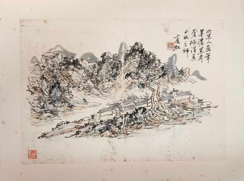 黃賓虹的繪畫經歷「黑、皴、蒼老」三階段轉化,早年工細秀潤,中年華滋富厚,晚年(60歲後)形成獨樹一幟的「黑賓虹」風格,以濃墨重皴、渾厚樸茂著稱,筆墨如「米癇石縠」般層層積澱,達到「計白當黑」的極致境界。代表作包括《天都雪霽》、《愚谷臨春》、《海上生明月》,融合浙派皴法與安徽古樸氣息,開創「黑墨」新境界,被視為中國畫由傳統向現代過渡的巔峰之作。