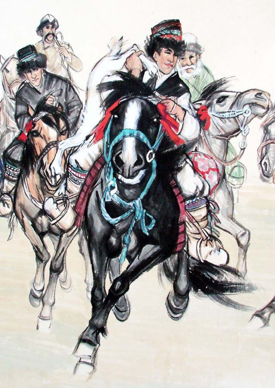 黃胄原名梁淦堂,河北蠡縣人,是中國著名畫家、社會活動家、收藏家,長安畫派代表人物之一。他以擅畫新疆人物、動物及西北風情聞名,作品充滿生活氣息,被譽為中國人物畫革新的開創者。